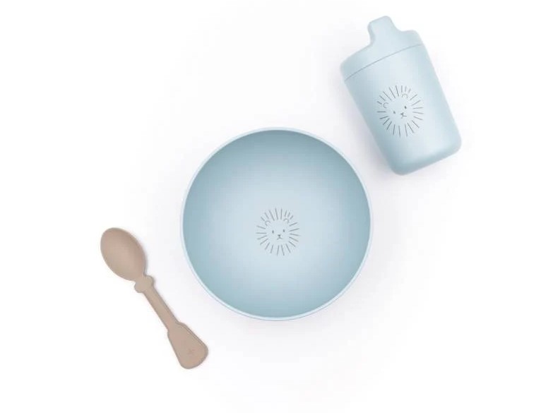 BAMBOOM FIRST MEAL SET (SCODELLA,BICCHIERE CON BECCUCCIO ,CUCCHIAIO)- AZZURRO