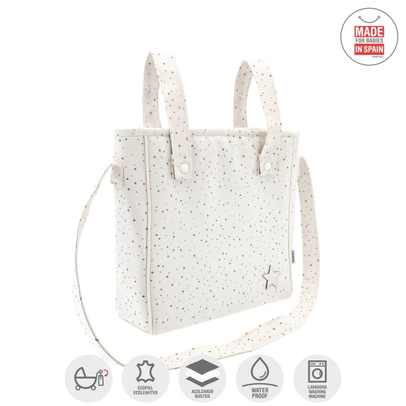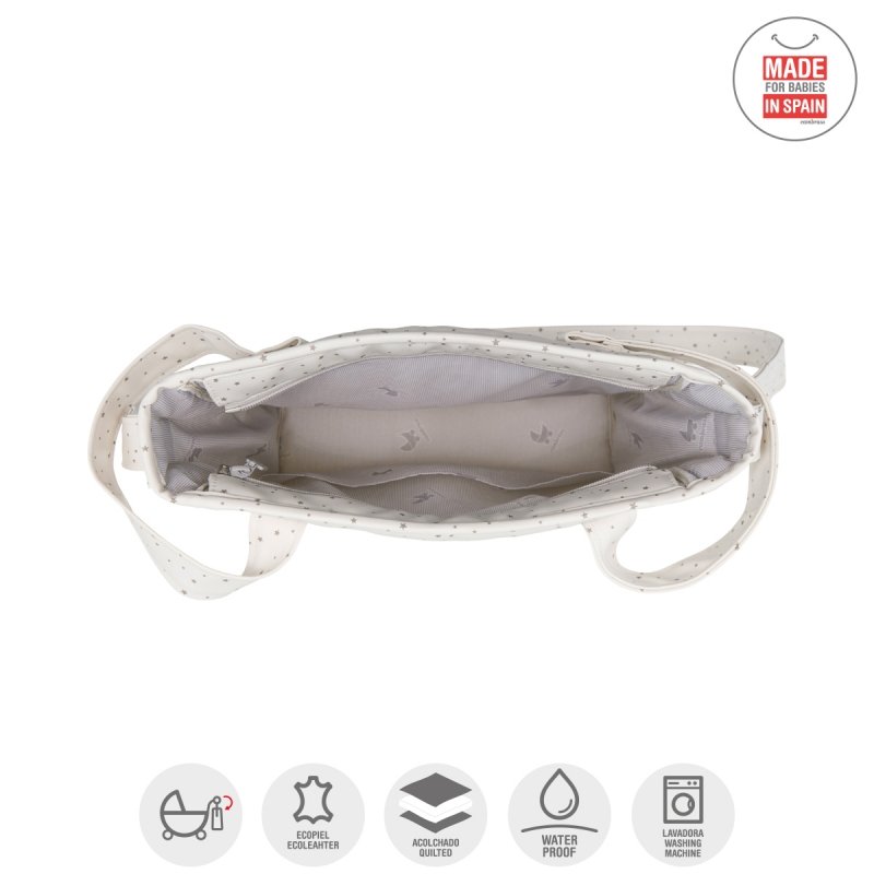 La borsa Panier di Cambrass è progettata con misure perfette, sia per essere appesa al passeggino che per essere trasportata dalla mamma. Questa borsa è dotata di 2 manici che si abbottonano con clip per poter essere appesa al passeggino, e di una tracolla perché la mamma possa portarla in spalla. Le sue dimensioni sono ideali per poter trasportare tutto il necessario per la vita di tutti i giorni del bambino La sua composizione perfetta ci permette il lavaggio sia a mano che in lavatrice. Le misure della borsa sono 10 cm x 34 cm x 33cm