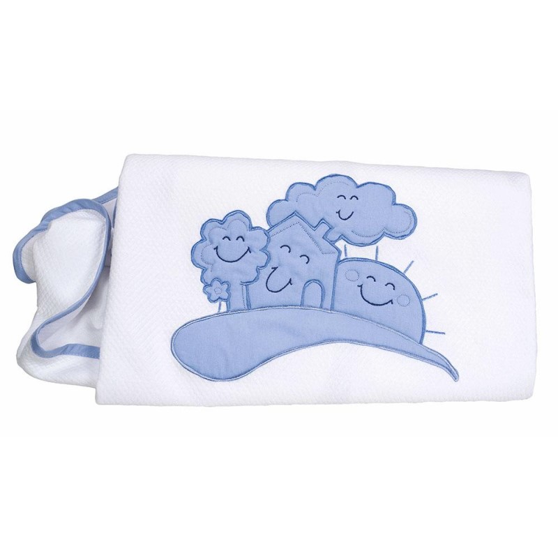 La copertina in jersey operato Fantasy e morbida e leggera, perfetta per l’utilizzo quotidiano durante la primavera o l’autunno. In tinta unita e con ricamo azzurro, abbraccera dolcemente il tuo bambino durante la nanna.Il Jerey operato e un materiale leggero e morbido che diventa sempre piu morbido ad ogni lavaggio. Copertina per culla e carrozzina. Misure: 70×80 cm