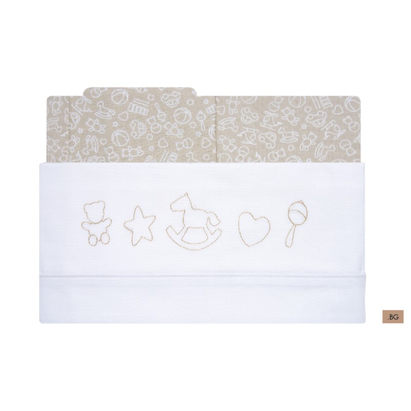 SET LENZUOLA per lettino BALOCCHIMateriale: 100 % cotoneDescrizione : Set 3 pezzi: lenzuolo sopra, lenzuolo sotto calibrato con elastico e federa.Misu
