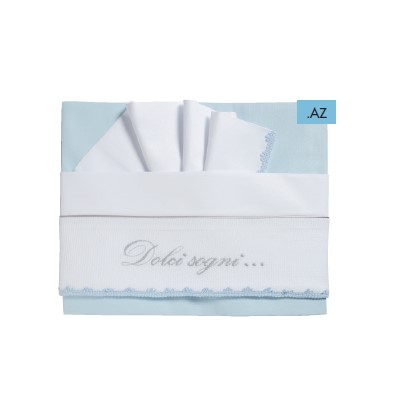 SET LENZUOLA per lettino DOLCISOGNIMATERIALE 100% cotoneDESCRIZIONE set 3 pezzi : lenzuolo sopra, sotto calibrato con elastico e federaMISURE materass