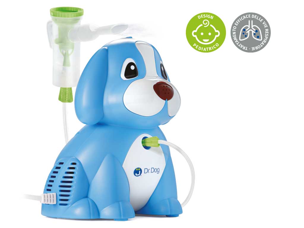Dr. Dog e un sistema per aerosolterapia ad aria compressa per uso pediatrico. Il suo design, dalla forma di un simpatico cagnolino, e stato studiato p