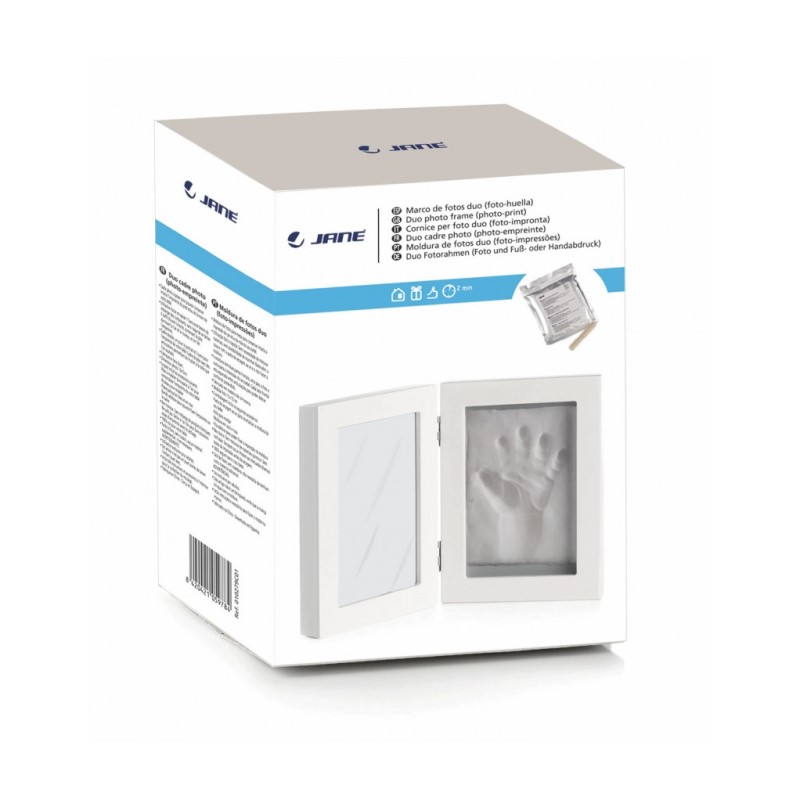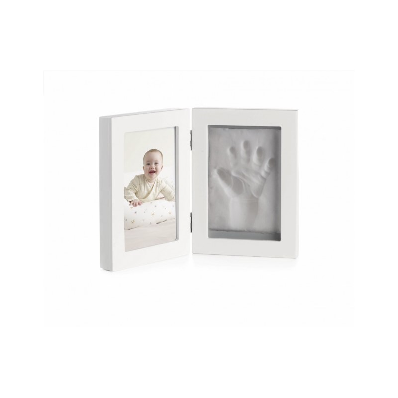 I neonati hanno manine e piedini adorabili, realizzarne l’impronta e un modo indelebile per conservare questi ricordi, un’idea regalo molto apprezzata da mamme, papa e nonni.A differenza di prodotti simili, questo kit e davvero facile da usare: il calco e pronto all’uso, non si corre il rischio di sporcare, non bisogna mescolare o aggiungere nulla: basta aprire al confezione e modellare la pasta con il rullo, se l’impronta non riesce al primo tentativo, basta stenderla nuovamente e riprovare.Per l’asciugare non serve il forno, il calco si asciuga in 2 minuti a temperatura ambiente.La pasta per il calco e atossica, senza mix di materiali chimici, assolutamente sicura per il bimbo.La cornice da tavolo e realizzata in legno laccato bianco con doppio frontale e cerniere.Contenuto:- cornice da tavolo in legno laccato bianco con cerniera- pasta per il calco- rullo modellante in legno naturale