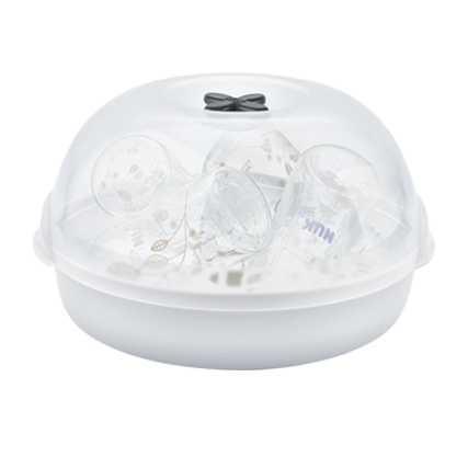 Ideale per biberon e relativi accessori utilizzati quotidianamenteDisinfetta biberon e accessori in soli 4 minutiAdatto per Biberon First Choice NUK e per biberon standard (eccetto biberon in PA)Sono incluse le pinze per estrarre i biberon, per una rimozione sicuraSi prega di notare la misura minima richiesta per le dimensioni del forno a microondeBiberon non inclusi