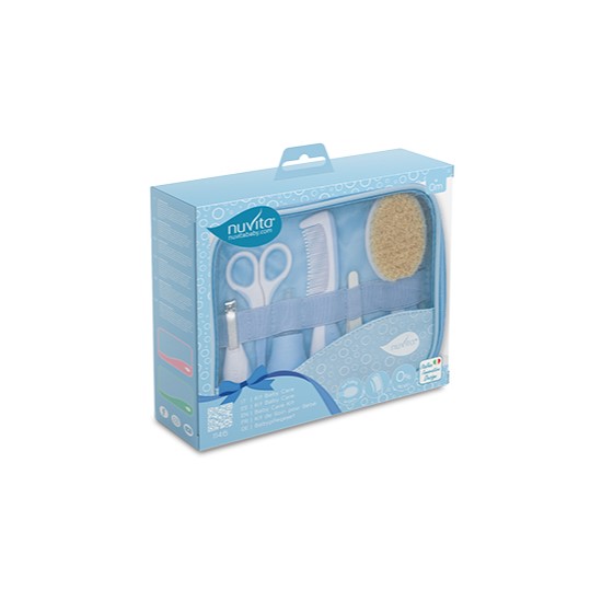 Nuvita – Kit completo per la cura del bambino, ideale da tenere in casa o portare in viaggio,Include:- 1 spazzola in setole naturali- 1 pettine- 1 aspiratore nasale- 1 forbici con punta arrotondata- 1 taglia unghie – 5 limeLa spazzola con setole in morbida lana naturale permette di spazzolare i capelli sottili senza irritare la cute.Il pettine con forma ergonomica segue la forma naturale della testa e le punte arrotondate non graffiano la cute; ideale per la crosta lattea.L’aspiratore nasale ha la punta extra morbida e flessibile in silicone per pulire il nasino efficacemente e delicatamente.Le forbici e il taglia unghie sono fabbricati in materiale anallergico privo di Nikel.