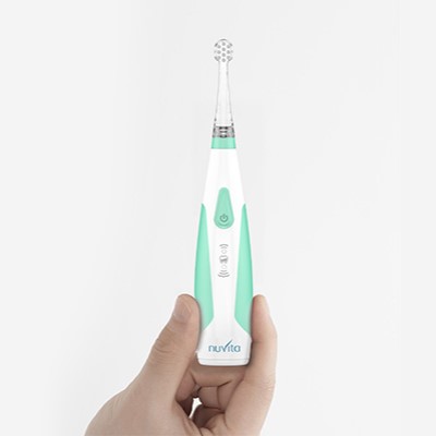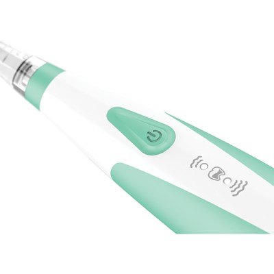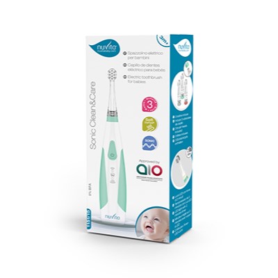 Spazzolino elettrico per neonati e bambini.-Le morbide setole in nylon DuPont assicurano una durata 2 volte maggiore.5 volte piu efficace di un normale spazzolino. 3 testine incluse.- Impermeabile al 100 % e dotato di chiusura di sicurezza del vano batteria a prova di bambino.- Luce LED temporozzata che si spegne automaticamente dopo 2 minuti.- Tecnologia Sonic: 16000-22000 vibrazioni al minuto. Doppia velocita : sensibile 16000 vibrazioni al minuto/pulizia profonda 22000 vibrazini al minuto. Doppia modalita: Continua/intermittente.